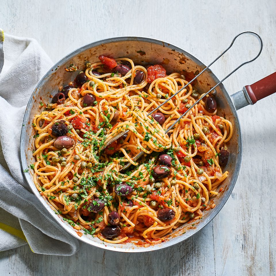 Details: A traditional Italian dish that is typically made with tomatoes, olive oil, olives, anchovies, and garlic in pasta.
